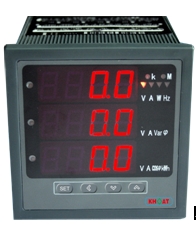 KHMPM/S電力儀表采用大規(guī)模集成電路進行模擬/數(shù)字轉(zhuǎn)換,實現(xiàn)模擬量的數(shù)字化顯示。具有測量準(zhǔn)度高,可靠性好,直觀、抗干擾能力強的特點。能高精度地測量三相電壓、三相電流、有功功率、無功功率、視在功率、頻率、功率因數(shù)、有功電能等電力參數(shù)。具有很強的擴展輔助功能,如用于監(jiān)視開關(guān)狀態(tài)的四路開關(guān)量輸入、控制開關(guān)動作的四路繼電器報警輸出、也可用于開關(guān)量輸出控制、兩路4-20mA模擬量變送輸出以及一個RS485通訊接口。儀表面板提供四個編程按鍵,用戶可現(xiàn)場方便地實現(xiàn)顯示切換、儀表參數(shù)編程設(shè)置。多功能電力儀表廣泛用于電站、電氣開關(guān)柜等各行業(yè)供配電場所、能源管理、自動化以及智能化網(wǎng)絡(luò)監(jiān)控系統(tǒng)等。