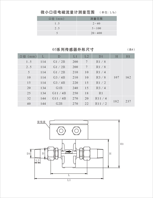 傳統(tǒng)電磁流量計由于受加工工藝及制造成本的限制,無法滿足用戶對微小流量的測量,05型微小口徑電磁流量計能測量低至每小時2升的極低流量。