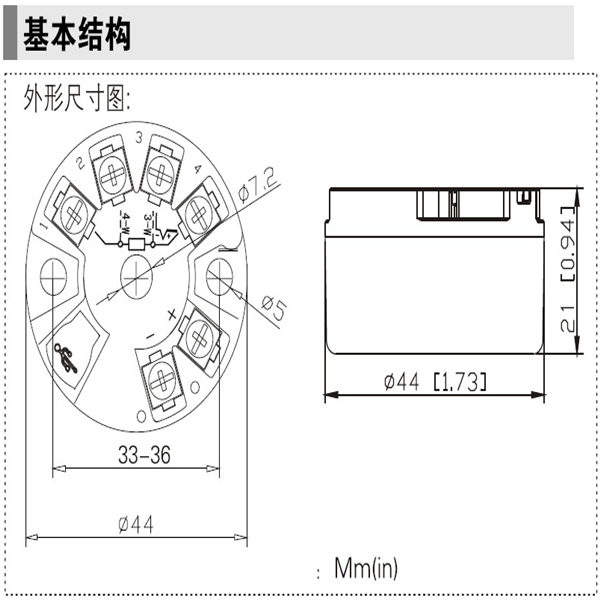 頭部安裝式智能溫度變送器,用于熱電阻(RTD)、熱電偶(TC)、電阻(Ω)、電壓(mV)信號輸入,二線制4~20mA模擬輸出,安裝于傳感器內(nèi)部(Form B)。