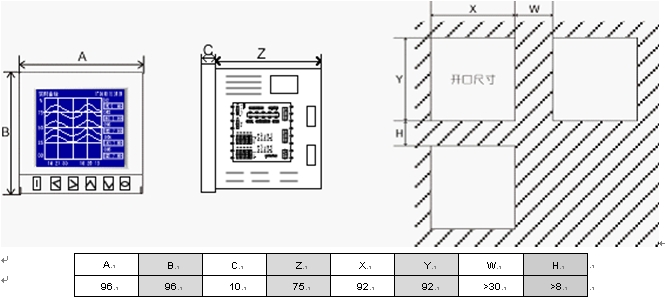 u 測(cè)量精度:±(0.2%FS+1)個(gè)字 u 電源電壓: AC85-240V、DC110V、DC24V u 顯 示:3.2寸TFT藍(lán)色320×240點(diǎn)陣 u 輸入規(guī)格: 熱電偶:K、S、N、E、J、 T、B、R、Wer526/523 熱電阻:PT100、CU50、 CU100 線性電壓:0-5V、1-5V、0- 10V、0-20mV...... 線性電流:4-20mA、0-10mA...... 脈沖輸入:訂貨時(shí)須知脈沖大 小 其它輸入:R、WRe526、 mV、其它 ◆ 輸出規(guī)格: 變送輸出:4-20mA、0- 10V......(最多2路) 繼 電 器:R2A、R2B、R2C(最多2路) 饋 電:U1/U2/U3(最多2 路) 打印/通訊接口:S1、S2、P USB接口:U u 記錄時(shí)間: 記錄間隔可任意設(shè)1、2、3、4、5、6、7、8……秒。 八筆記錄:360天 (記錄間隔1分鐘) u 斷電保護(hù)時(shí)間: 用FLASH MEMORY保存設(shè)置參數(shù)和歷史數(shù)據(jù),斷電后永久保存,采用硬件時(shí)鐘,掉電后也能準(zhǔn)確運(yùn)行。 u 環(huán)境溫度:-20-50℃ ◆ 環(huán)境濕度:0-85%RH ◆ 外形尺寸:96×96×85mm ◆ 安裝尺寸:92×92×75mm |