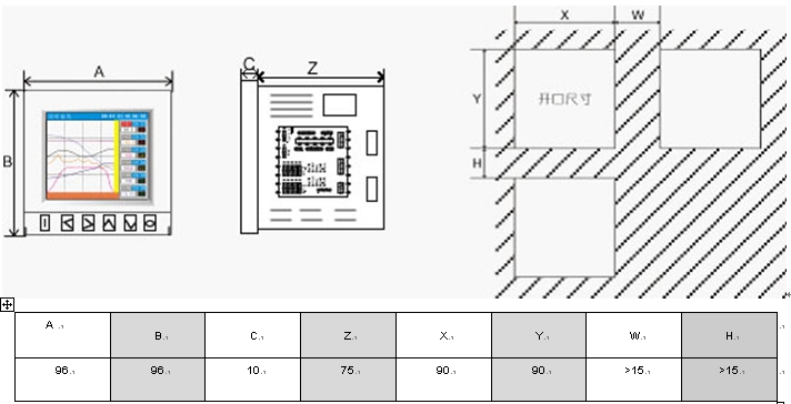 u 測量精度:±(0.2%FS+1)個(gè)字 u 電源電壓: AC85-240V、DC110V、DC24V u 顯 示:3.2寸TFT彩色320×240點(diǎn)陣 u 輸入規(guī)格: 熱電偶:K、S、N、E、J、T、 B、R、Wer526/523 熱電阻:PT100、CU50、CU100 線性電壓:0-5V、1-5V、0-10V、 0-20mV...... 線性電流:4-20mA、0-10mA...... 脈沖輸入:訂貨時(shí)須知脈沖大小 其它輸入:R、WRe526、mV、其它 ◆ 輸出規(guī)格: 變送輸出:4-20mA、0-10V...... (最多2路) 繼 電 器:R2A、R2B、R2C(最多2路) 饋 電:U1/U2/U3(最多2路) 打印/通訊接口:S1、S2、P USB接口:U u 記錄時(shí)間: 記錄間隔可任意設(shè)1、2、3、4、5、6、7、8……秒。 八筆記錄:360天 (記錄間隔1分鐘) u 斷電保護(hù)時(shí)間:用FLASH MEMORY保存設(shè)置參數(shù)和歷史數(shù)據(jù),斷電后永久保存,采用硬件時(shí)鐘,掉電后也能準(zhǔn)確運(yùn)行。 u 環(huán)境溫度:-20-50℃ u 環(huán)境濕度:0-85%RH ◆ 外形尺寸:96×96×85mm u 安裝尺寸:92×92×75mm |